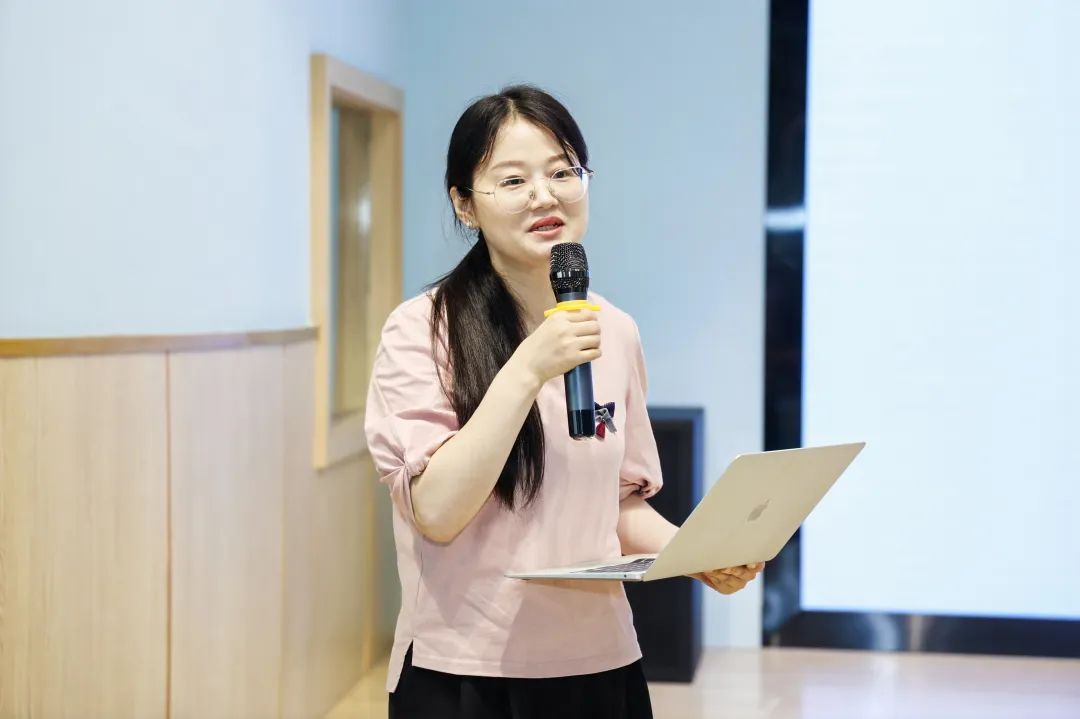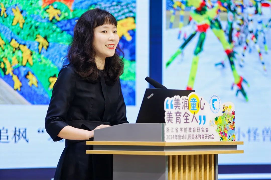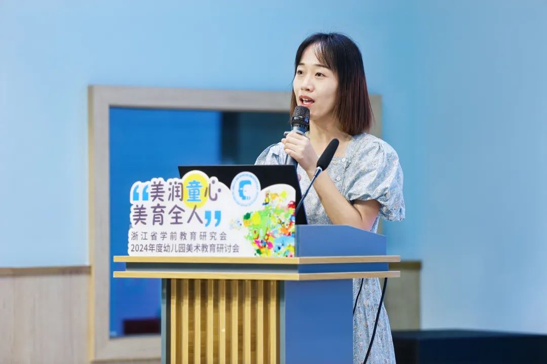 浙江波菲教育玩具有限公司设计总监顾笑妍向与会代表介绍了浙江波菲教育玩具有限公司通过与高校、幼儿园的通力合作,设计与创建适合的幼儿园美育环境的基本思路,同时通过丰富多样的设计图和实景图,结合案例解析了美育环境设计理念,向大家传递了美育环境设计的重要意义。