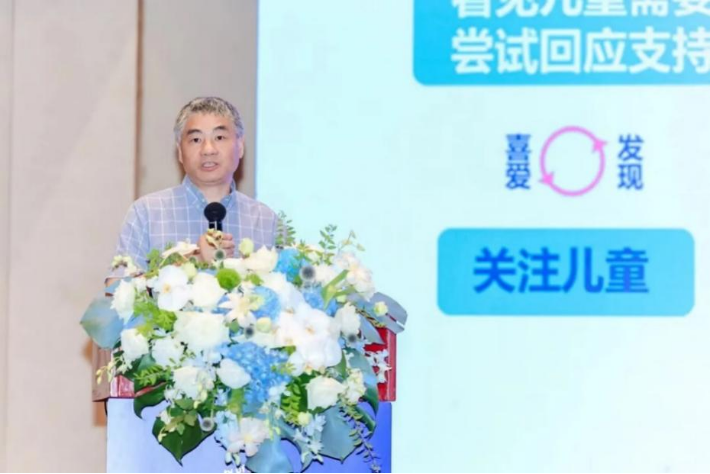 围绕“幼儿教师教育智慧的价值旨归与内涵要义”,第二场研讨由中国学前教育研究会教师发展专委会副主任张根健主持。华东师范大学苏雪云教授的报告《高质量教育背景下学前教育教师融合教育素养探析》,通过剖析国内外相关政策中对融合教育的要求,指出融合教育的重要价值,并分享了她对于高质量学前融合教育教师培养的几点思考。南京市鹤琴幼儿园园长、南京师范大学张俊副教授的报告《活教师:从研究儿童起步》,指出新时代“活教师”内涵包括爱的性情、创造的实践和研究的态度,“活教师”成长路径是从“关注儿童:看见儿童需要,尝试回应支持”到“解读行为:回应儿童行为,找到有效策略”到“理解发展:教学评估一体,灵活支持发展”。中国学前教育研究会教师发展专业委员会秘书长、首都师范大学夏婧教授的报告《幼儿园教师家庭教育指导胜任力》,强调了家庭教育指导对于为家长赋能、提升家庭教育质量、促进幼儿健康成长的重要性,并指出幼儿园教师家庭教育指导胜任力的内涵以及提升的对策与建议。深圳市教育幼儿园园长、特级教师王翔的报告《循道返本:儿童学习中心课程中的教师支持策略》,用“融合”“跨界”“创新”三个关键词介绍了深圳市教育幼儿园构建的以学习中心活动为主体的中国化经验课程模式以及教师支持策略。杭州市萧山区北干学前教育集团总园长、杭州市教坛新秀黄水涓的报告《种子成长营:催生教师无限的内在生长》,指出新质幼儿园是时代赋予学前教育的新命题,也对幼儿园教师提出了更高的要求。