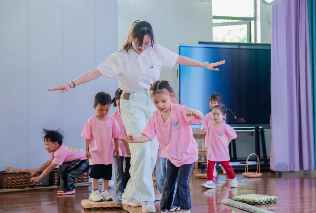 新登镇第二幼儿园陶莹莹老师将乡村幼儿乘坐巴士去旅行的情景融入小班健康活动中,利用竹材料作为旅行途中的交通工具和通关工具,同时结合音乐的节奏引导幼儿进行静态平衡的探索。设计中充分考虑小班幼儿的年龄特点和兴趣,整个活动充满了乐趣和挑战,让幼儿在愉快的氛围中获得了身心的健康成长。