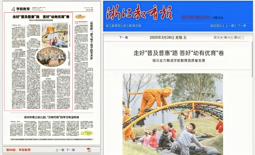 《走好“普及普惠”路 答好“幼有优育”卷——缙云全力推进学前教育高质量发展》刊发于《浙江教育报》2025年3月28日第4版“学前教育”专栏