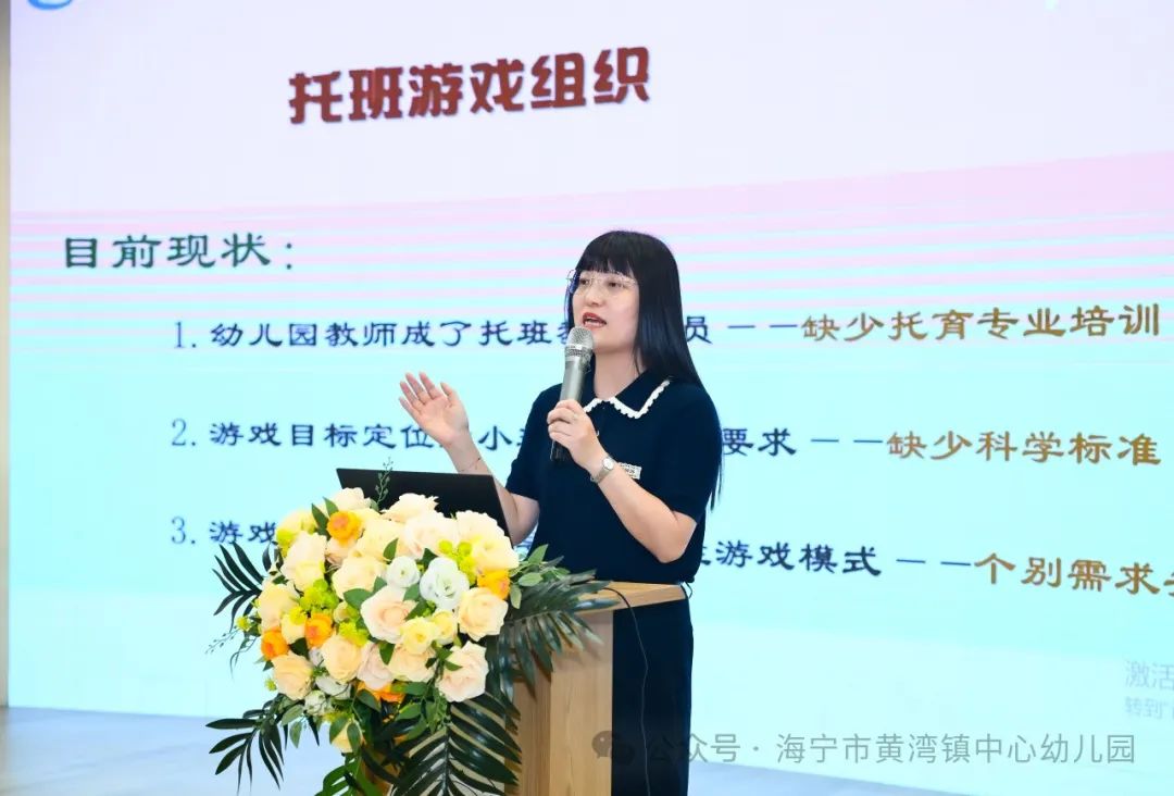 桐乡市崇福镇中心幼儿园园长范惠根作《参与.选择.个性——“三机会”助推托班游戏高质量组织》案例分享,分析托班游戏现状,提出“给予参与体验的机会、支持自主选择的机会、赋予个性成长的机会”,生动阐释该模式的应用意义。