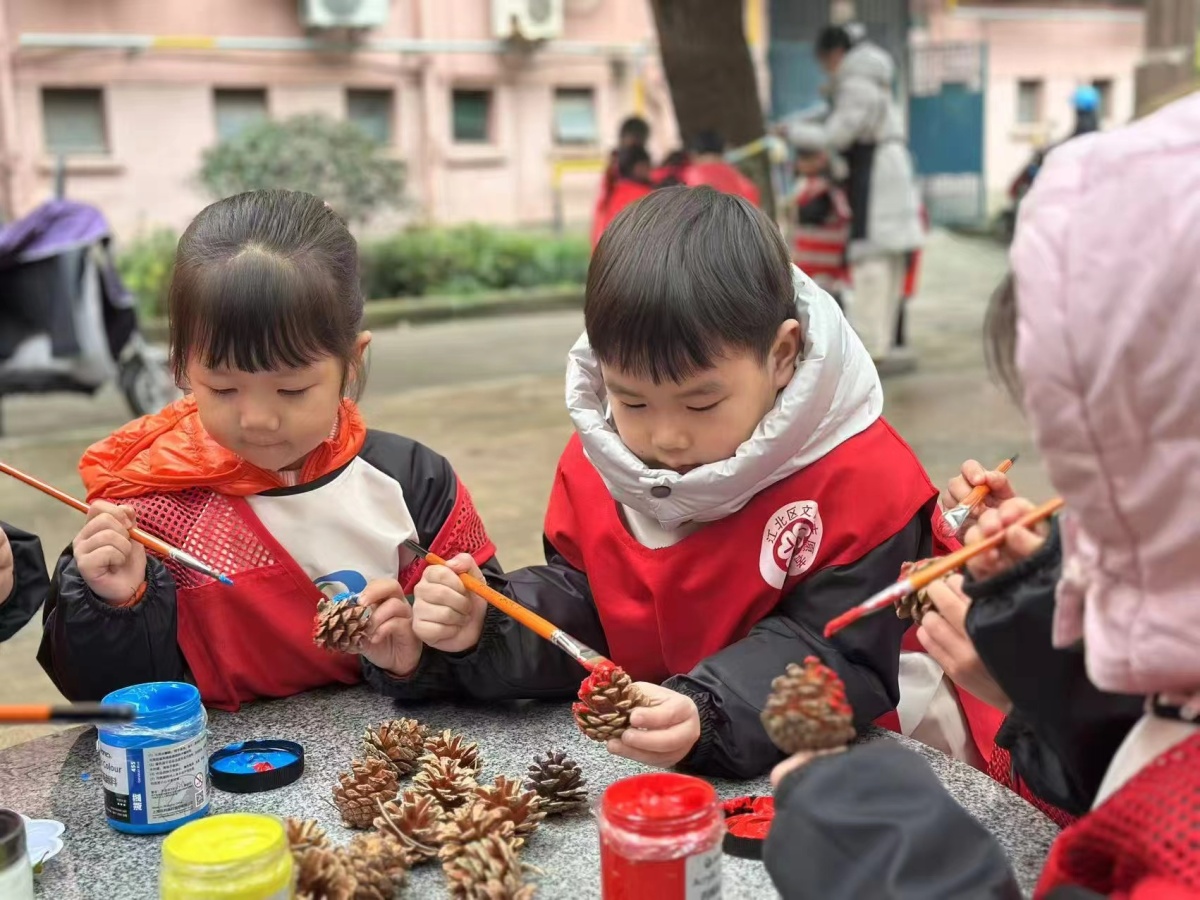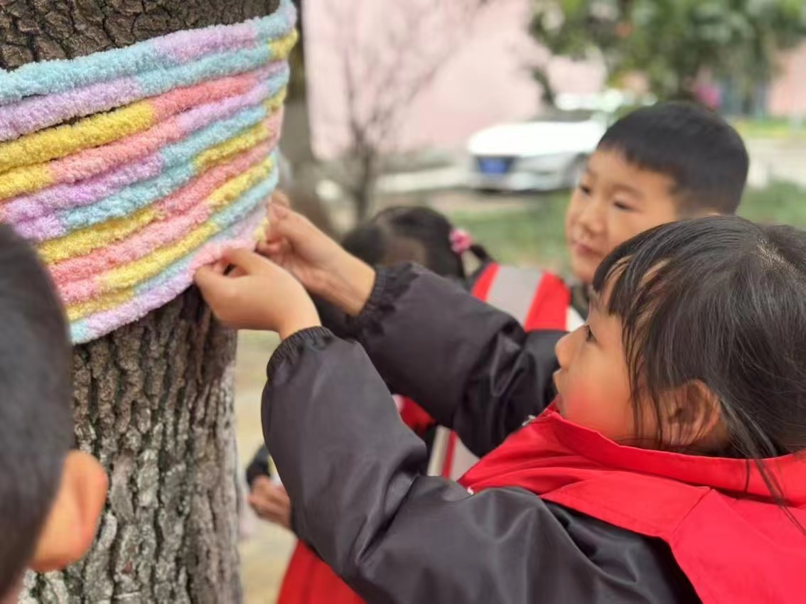 废旧的自行车经孩子们巧手“装扮”,俨然成为一件别具韵味的艺术品;户外捡来的松果被涂上斑斓色彩,好似朵朵盛开的鲜花;旁边的大树也被赋予了“温暖”,穿上了冬日的毛衣。通过一系列造型、装置,成功让社区原本脏乱差的角落重焕生机,实现了旧貌换新颜的华丽转变。