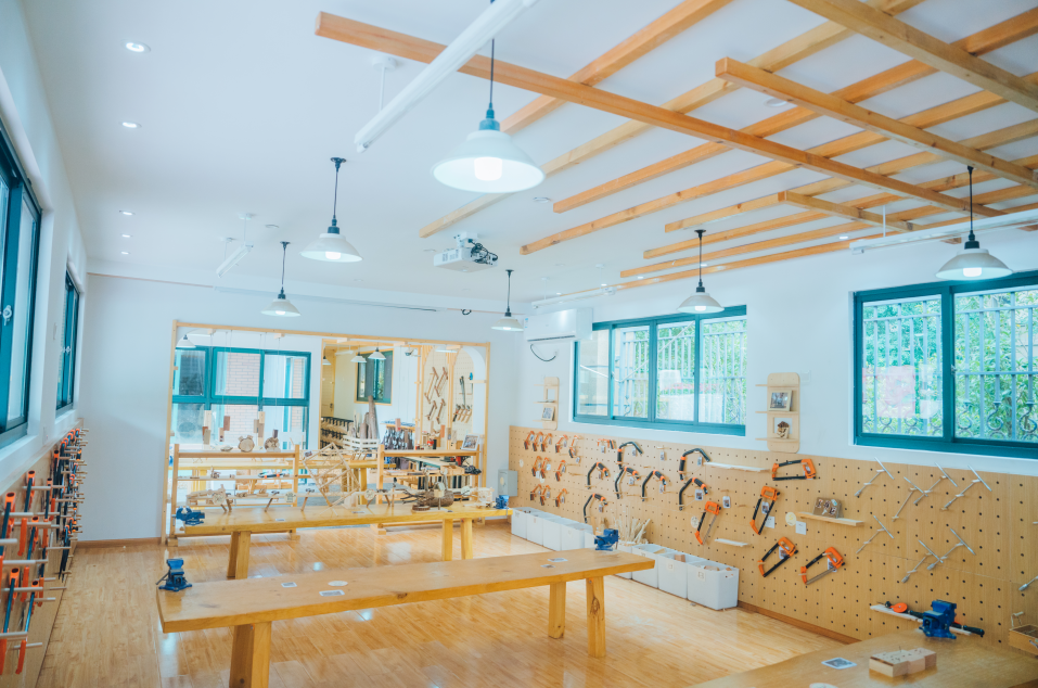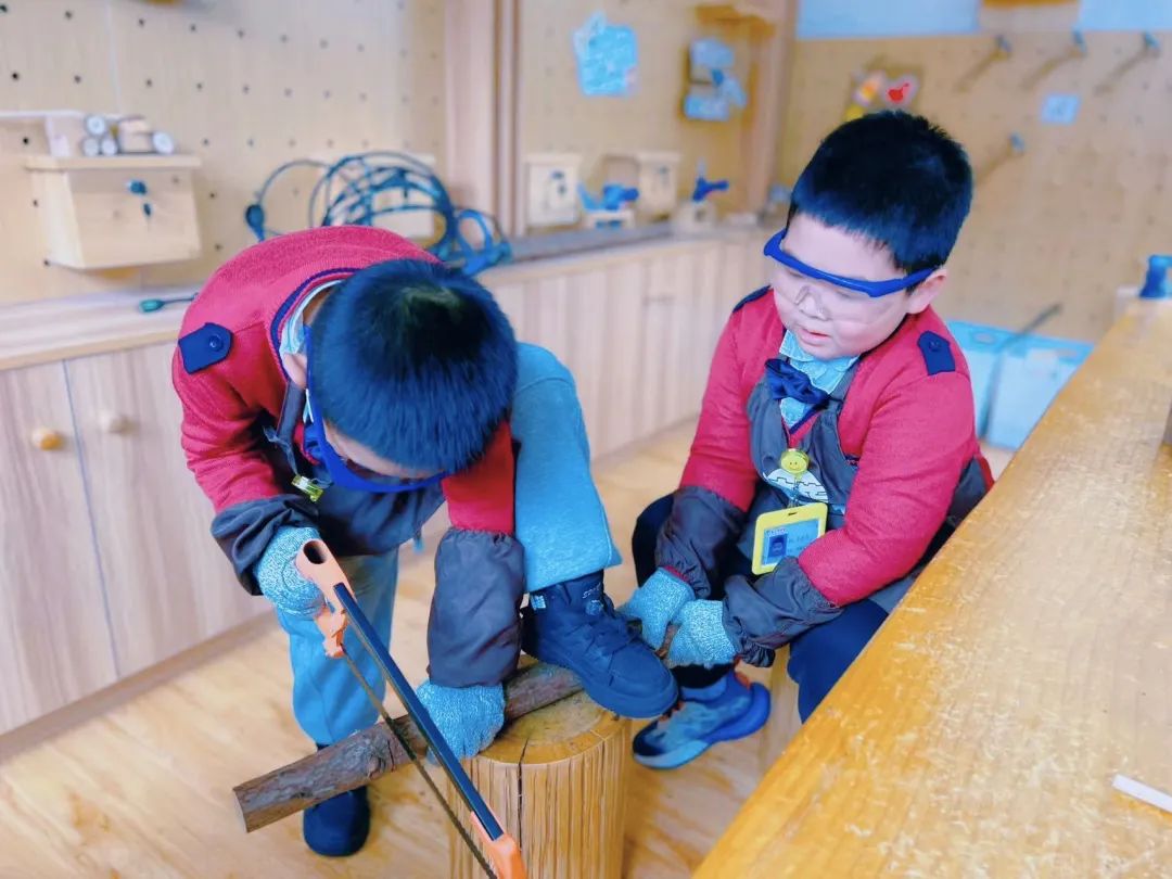 大大的集装箱里藏着一个木工坊!来自大自然的木材是孩子们最好的玩伴,锯一锯、切一切、钉一钉……孩子们自己动手去创造,用木头将奇思妙想化为一个个可爱有趣的作品。木工坊不仅是孩子们学习和实践的基地,更是激发他们好奇心、想象力和创造力的摇篮。